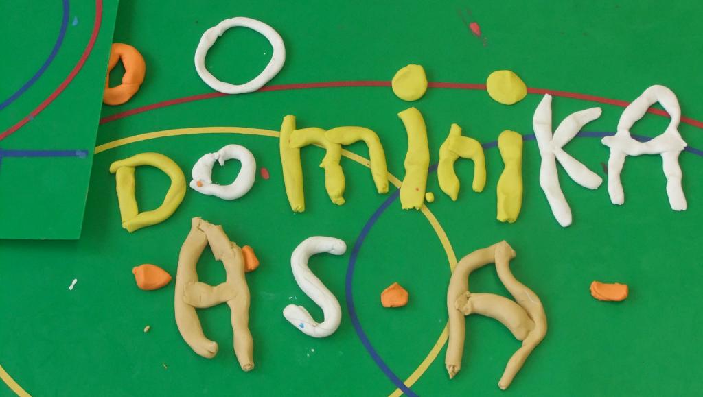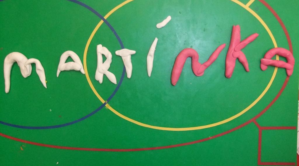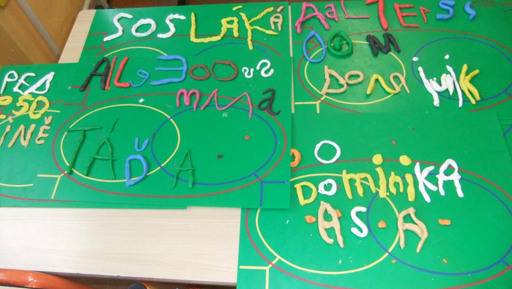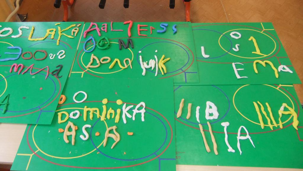 Písmenka nás provází celou první třídou. Při pracovním vyučování vznikaly nápisy a jména. Práce nás bavila a výsledek všechny překvapil.